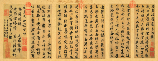 觀自在菩薩 行深般若波羅蜜多時 照見五蘊皆空 度一切苦厄 舍利子 色不異空 空不異色 色即是空 空即是色 受想行識 亦復如是 舍利子 是諸法空相 不生不滅 不垢不淨 不增不減 是故空中無色 無受想行識 無眼耳鼻舌身意 無色聲香味觸法 無眼界 乃至無意識界 無無明 亦無無明盡 乃至無老死 亦無老死盡 無苦集滅道 無智亦無得 以無所得故 菩提薩埵 依般若波羅蜜多故 心無罣礙 無罣礙故 無有恐怖 遠離顛倒夢想 究竟涅槃 三世諸佛 依般若波羅蜜多故 得阿耨多羅三藐三菩提 故知般若波羅蜜多 是大神咒 是大明咒 是無上咒 是無等等咒 能除一切苦 真實不虛 故說般若波羅蜜多咒 即說咒曰 揭諦揭諦 波羅揭諦 波羅僧揭諦 菩提薩婆訶